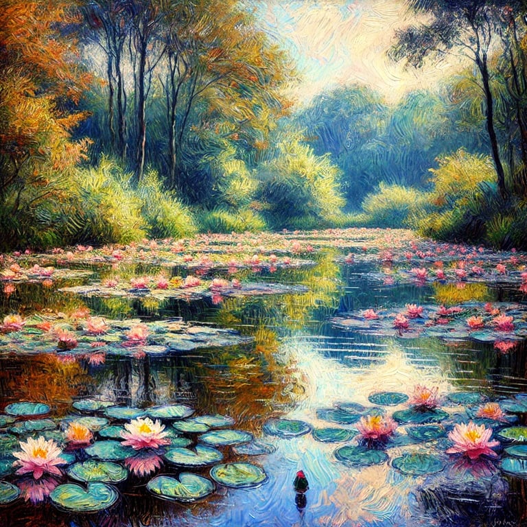Claude Monet's 'Water Lilies' series is a quintessential example of Impressionist art, showcasing his focus on light, reflection, and natural beauty. Painted in his garden at Giverny, the works feature tranquil ponds covered with lilies.